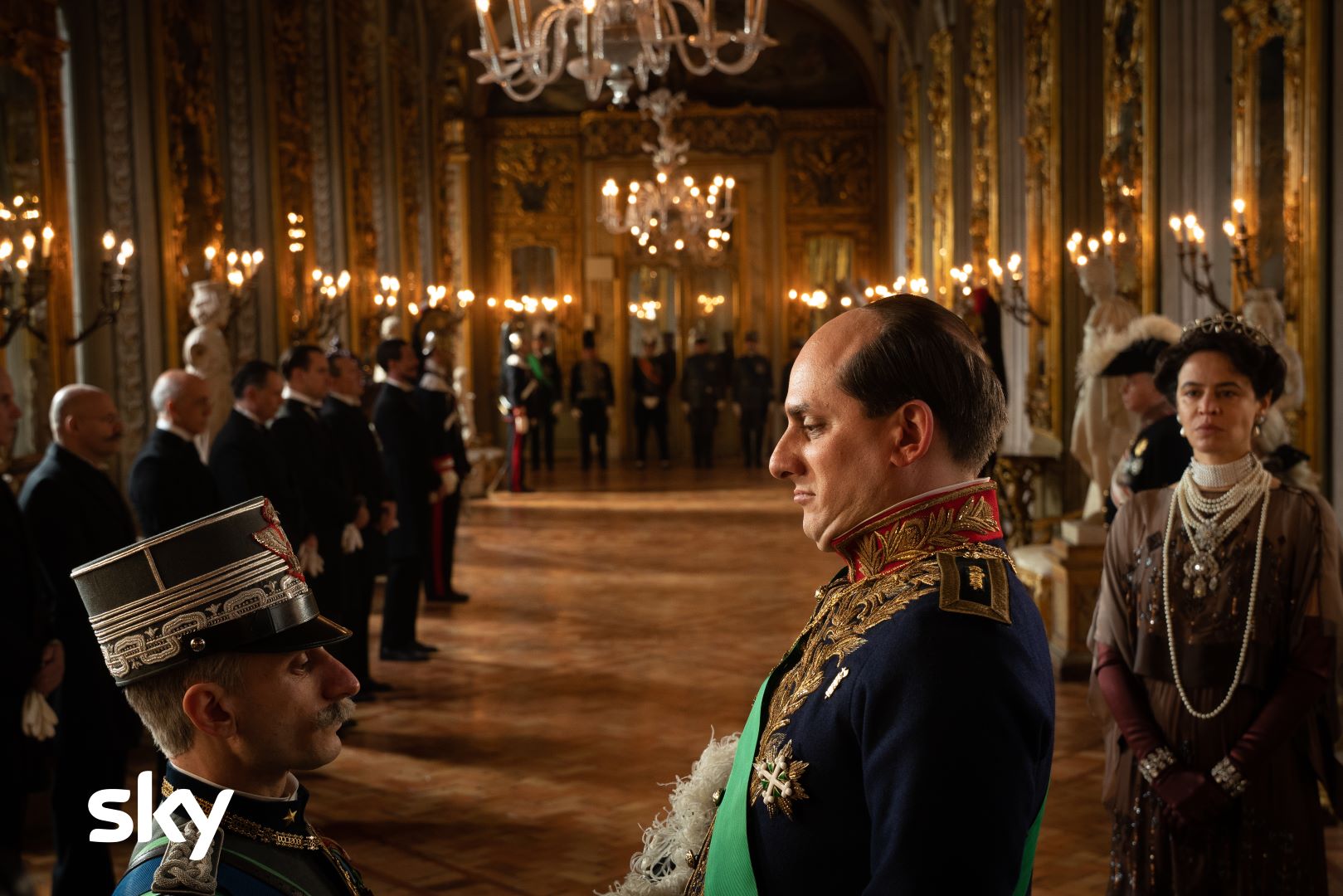 Many official locations, however, effectively "interpret" other places. The most striking example is undoubtedly the Quirinale Palace, for which at least two recognisable buildings were used. The first being the Royal Palace in Naples, a neoclassical masterpiece whose architects included Ferdinando Sanfelice and Luigi Vanvitelli, where the grand staircase serves as the entrance to the residence of King Victor Emanuel III (Vincenzo Nemolato). The second is Palazzo Doria Pamphilj in Rome, whose 18th-century hall of mirrors overlooking via del Corso, provides the setting for meetings between Mussolini and the king.