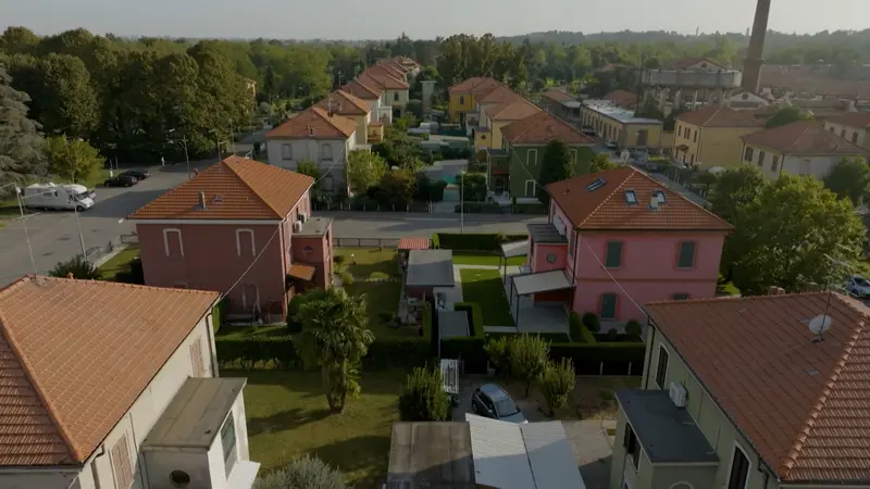 Villaggio Crespi was built in 1878 to provide the workforce and their families with comfortable living near the factory. Its history is told in the novel “Al di qua del Fiume” by Alessandra Selmi. Films set here include: Guida romantica ai posti perduti (Giorgia Farina, 2020), a road movie with Jasmine Trinca; I Cammelli by Giuseppe Bertolucci (1988); 18 regali by Francesco Amato (2020) with Vittoria Puccini and Benedetta Porcaroli.