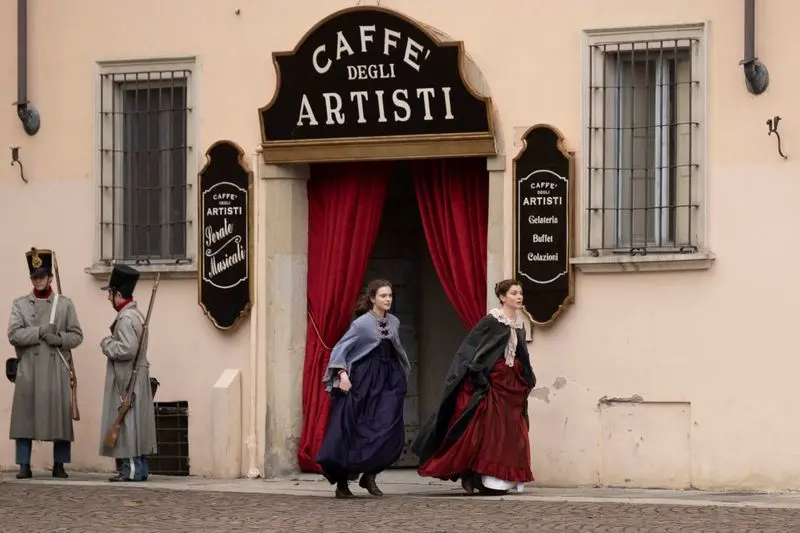 Locations in Lombardy included: Stezzano, municipality in the Bergamo area, which provided Villa Caroli Zanchi; Brescia (Teatro Grande) and Pavia where the Teatro Fraschini was transformed into Milan’s Teatro Scala, and Strada Nuova was dressed with period windows to return to the 19th century.