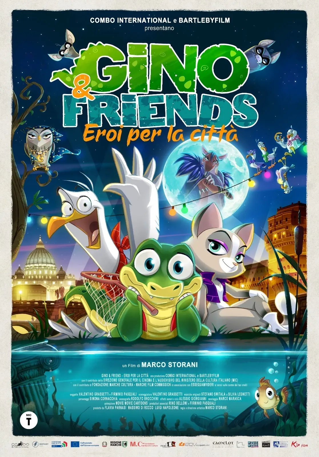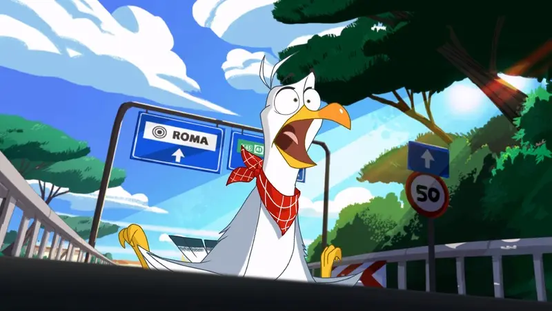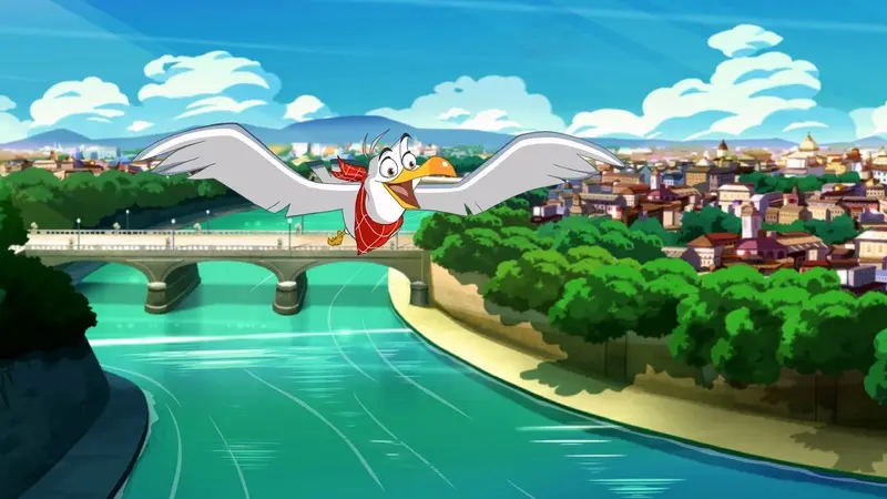 Gino & Friends is a coming-of-age story intended for younger children, set in the city of Rome and created with the contribution of DGCA-MiC, Regione Marche (PR-FESR 2021-2027), Fondazione Marche Cultura and Marche Film Commission. The protagonists cross the city, back and forth, which is beautifully displayed, as if in a panoramic, vibrant 2D-animated postcard, offering the most evocative and classic views: the dome of St. Peter, Castel Sant’Angelo, the bridges over the Tiber, as well as places well known to its inhabitants such as the Grande Raccordo Anulare, underground Rome whose sewers house the bad guys, and the Bioparco where the characters meet the large zoo animals who help them in their mission, including some crocodiles who help little Gino overcome his identity crisis. The Tiber river is a common theme in all the events.