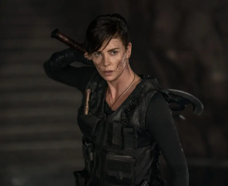 A dark-haired Charlize Theron plays Andromache of Scythia, the leader of a group of clandestine immortal mercenaries fighting to protect the mortal world. The cast includes Luca Marinelli and Uma Thurman.