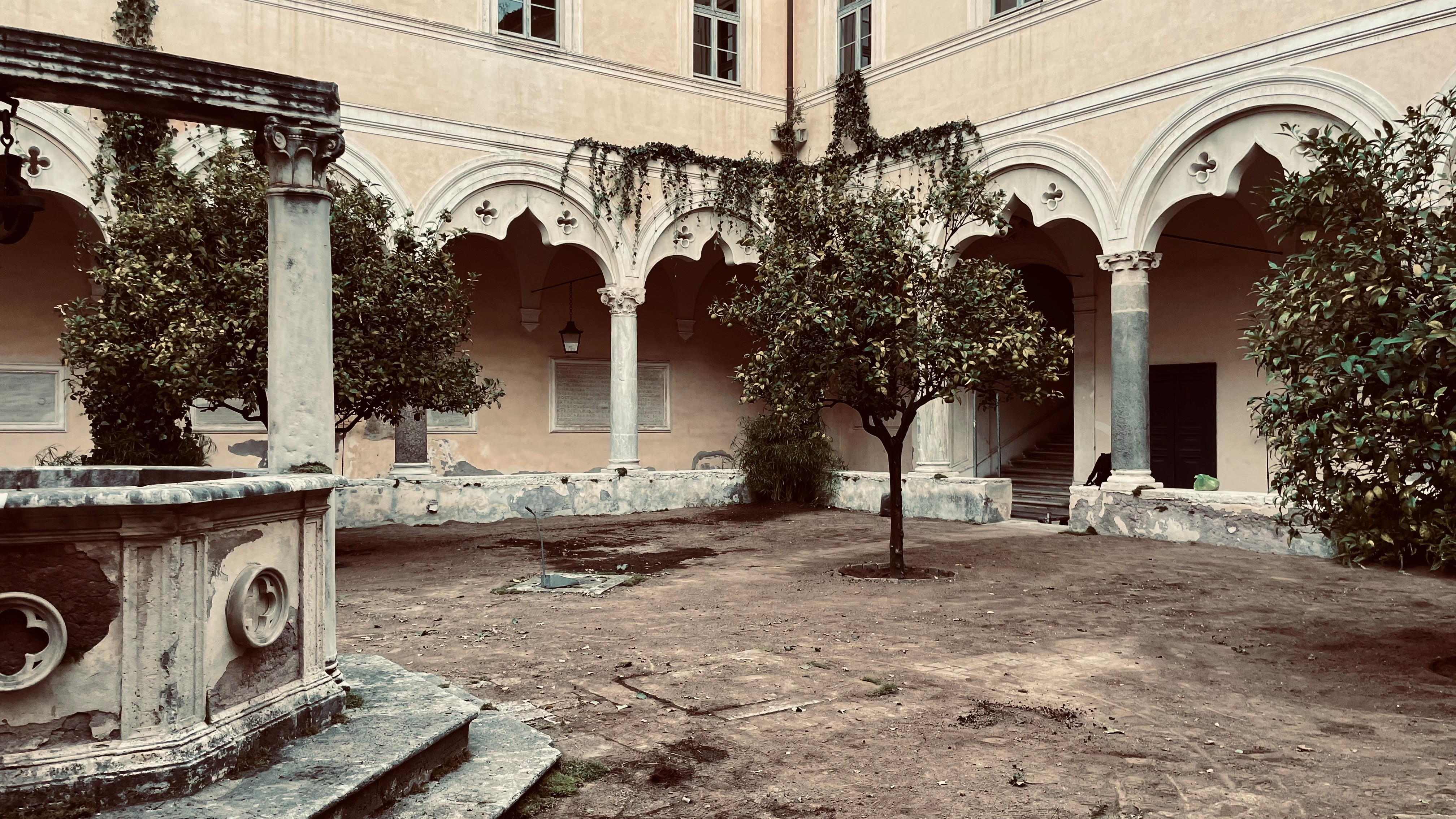 The cloister is seen throughout the film, several times with the young orphans moving through it: however, it does not actually exist. It is actually the result of set designer Gaspare De Pascali’s transformation of the Roman cloister of Sant'Alessio sull'Aventino (actually the Basilica of Saints Boniface and Alexis) into a Venetian-style building, with Arabic-style arches.