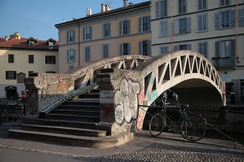 The Alda Merini Bridge, also known as the “stone bridge”, stands on the Naviglio Grande in Milan, opposite what was the poet Alda Merini’s house in ripa di Porta Ticinese.