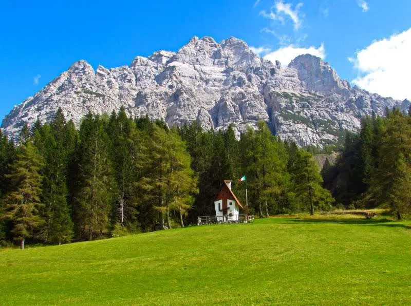 It hosts two refuges – the San Sebastiano and the Cesare Tomè – which offer typical local dishes and overnight stays, and the small church of the Alpini.