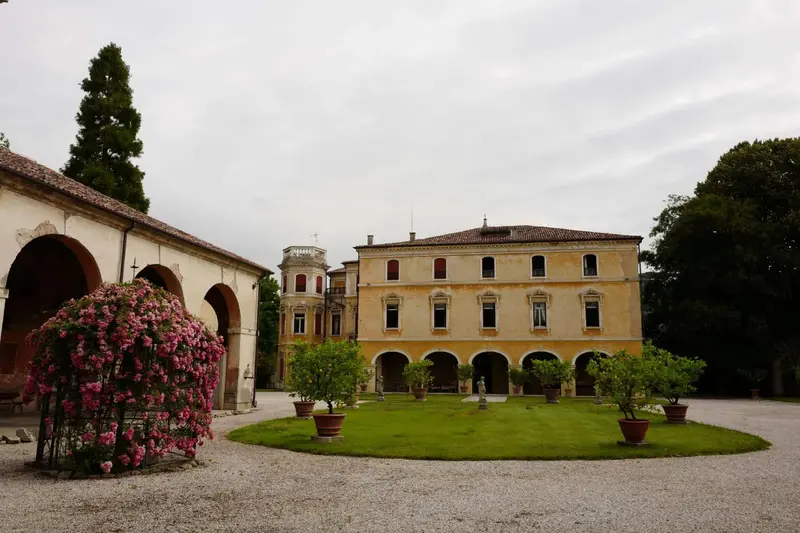 Villa Albrizzi stands inside a 19th century, 3.5-hectare park in Este (Padua), on the edge of the historical centre, not far from the Euganean Hills. Owned by descendants of the Albrizzi family, the estate comprises the villa, padiglione delle feste (party pavilion) decorated with 18th century Venetian stuccowork and the barchessa, once used for farming and later converted for residential use.