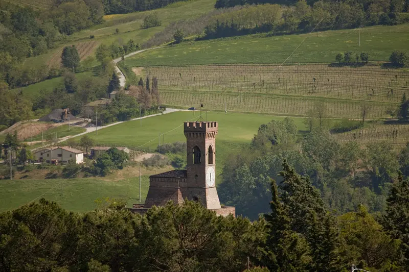 The clock tower in Brisighella (Ravenna) was originally a fort, built from square chalk blocks in 1290 by Maghinardo Pagani da Susinana to control the siege of the nearby Baccagnano Castle. It was the town’s defensive system along with the fortress until 1500. Damaged and rebuilt several times, the tower was completely remade in 1850, and the clock with a six-hour dial was added. The tower offers an interesting view of the calanchi, a geological formation of blue clay eroded by atmospheric agents.