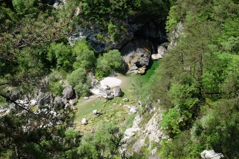 An inhospitable area in the Carnic Prealps, on the edge of the Parco naturale delle Dolomiti Friulane (Natural Park of the Friuli Dolomites), is deeply marked by the waters of the Meduna river. For millennia, throughout the past, irregular slopes created a watercourse studded by iridescent beaches, a little territorial paradise where the sprays of torrential water finally calm, forming the incredible, emerald-green natural pools known as the pozze smeraldine. These intimate spaces are scattered between huge blocks of limestone on the slopes of the mountains. Every visitor here can find their own corner of nature, enjoying the deep peace of the primordial elements that combine perfectly in this valley. An untouched, enchanting setting that bewitches everyone.
