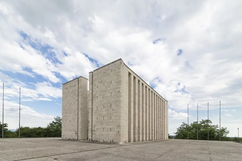 The Hill of Medea was the location chosen for this monument; Medea is a small village in the Friulian plain, halfway between Gorizia and Palmanova, a former observation point of King Victor Emmanuel III on the Isonzo River during the Great War. The construction of this monument started on the top of this hill, at 135m ASL, in late December 1950 under the direction of engineers Sirtori and Mocellini and following a project by architect Mario Bacciocchi from Milan.
