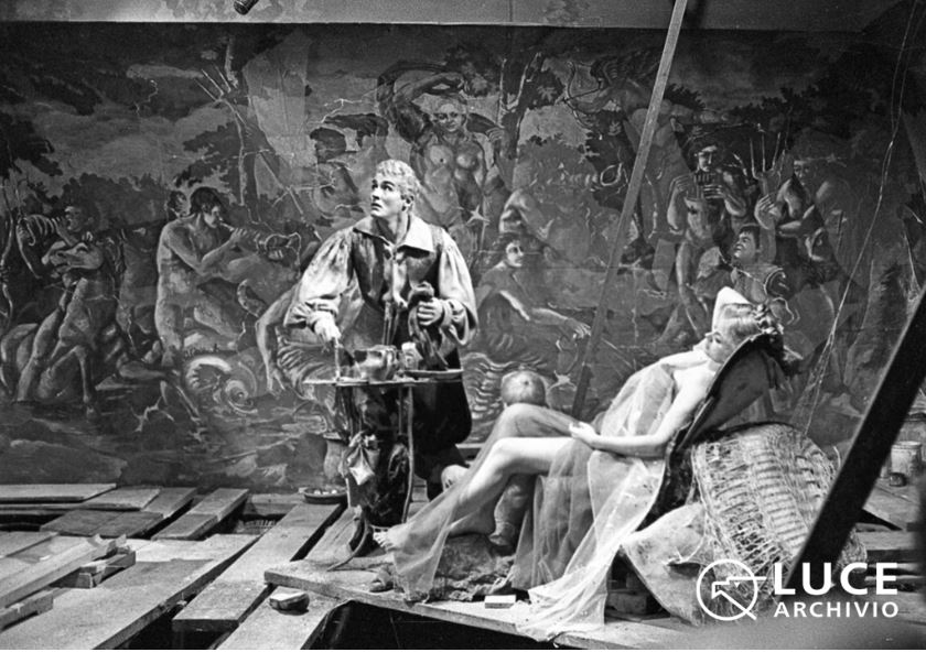The hilarious sequences that ensue, where Gassman uses the other ghosts as models, including beautiful Flora (Sandra Milo), and rails against the art historian Randoni (Mario Maresca), modeled on Roberto Longhi, who attributes the fresco not to him but to the "brush" of none other than... Caravaggio, appear to be a precise reference to the painting in the Casino Ludovisi!
