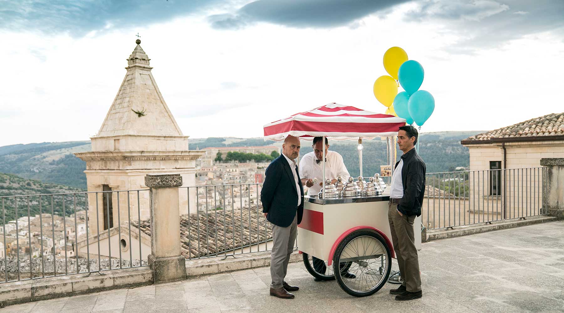 Luca Zingaretti and Peppino Mazzotta in a scene from "The Catalanotti Method".