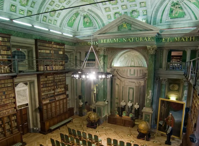 Interiors for the Quirinale Palace were also filmed in the Piedmontese capital, in different buildings. The Hall of Globes of the Academy of Sciences,decorated by Giovannino Galliari in 1787 with depictions of scientific instruments on the ceiling,revealsits identity in one of Sorrentino’s many central shots featuring the two large globes created by the Venetian cartographer Vincenzo Maria Coronelli (1650-1718).